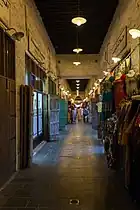 The souq was founded at least a century ago in proximity of the dry river bed known as Wadi Musheireb. It was a gathering place where Bedouins and locals would trade a variety of goods,[2] primarily livestock goods.[3] However with the boom in prosperity in the 1990s, the Souq fell into decline and in 2003, most of it was destroyed in a fire. This event initiated a restoration program by the government in 2006, with the purpose of preserving its architectural and historical identity. The first phase of restoration was funded by the Emir Sheikh Hamad bin Khalifah al Thani and his wife Sheikha Moza bint Nasser.[4] Buildings constructed after the 1950s were demolished whereas older structures were refurbished. The restoration was completed in 2008.[5] Traditional heating methods are employed by utilizing wood and bamboo imported from various areas of Asia.[3]