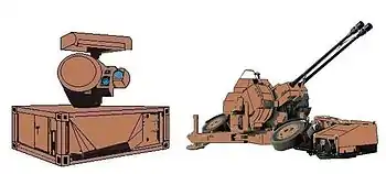 | Contraves Superfledermaus | Off-road trailer, fire control omnidirectional pulse radar device, simultaneously for two Oerlikon 35mm guns | ![]() | |