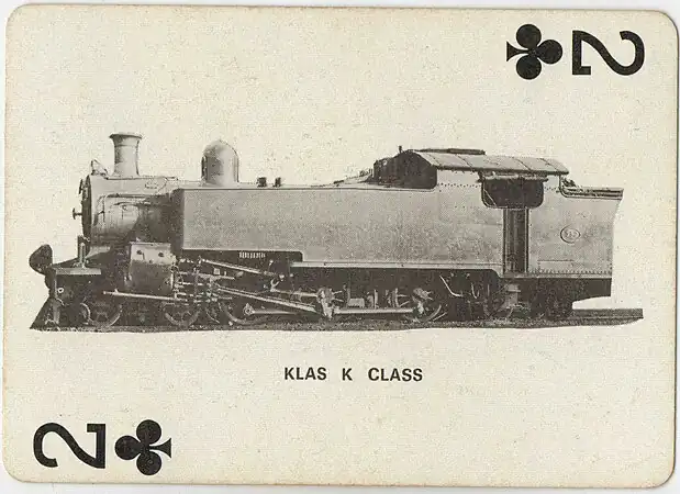 Seven 4-6-4 side-tank steam locomotives were built for the Manila Railroad Company in the Philippine Islands by the North British Locomotive Company (NBL) in 1914. Because of difficulties experienced in delivering them to the Philippines during the First World War as well as a critical wartime shortage of locomotives on the South African Railways (SAR), NBL eventually offered the seven locomotives for sale to the SAR. They were purchased and delivered in 1917, designated Class K and numbered in the range from 347 to 353.[1][2][3][4]
