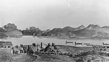 In the 1820s, the threat of Ngāpuhi war parties from the north during the Musket Wars caused most of the Tāmaki Makaurau area to become deserted.[53] Ngāti Whatua and Waiohua relocated to the Waikato under the protection of Pōtatau Te Wherowhero.[64] A peace accord between Ngāpuhi and Waikato Tainui was reached through the marriage of Matire Toha, daughter of Ngāpuhi chief Rewa was married to Kati Takiwaru, the younger brother of Tainui chief Pōtatau Te Wherowhero, who settled together on the slopes of Māngere Mountain.[72]:67 Ngāti Whātua returned to the Māngere-Onehunga area by the mid-1830s,[53] re-establishing a pā on Māngere Mountain called Whakarongo.[80] During the 1840s, Waiohua descendant tribes returned to their papakāinga (settlements) at Ihumātao, Pūkaki, Papahīnau, Waimāhia and Te Aparangi.[81][79] Māngere-Onehunga was the main residence of Auckland-based Ngāti Whātua until the 1840s.[53][81]