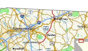 South Carolina Highway 150 (SC 150) is a 33.580-mile (54.042 km) primary state highway in the U.S. state of South Carolina. The highway connects Pacolet and Gaffney with the more rural areas of Spartanburg and Cherokee counties.
