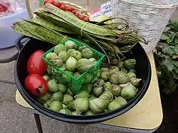 Different varieties of tomatillos and beans were often for sale at the Sunday farmers' market at the Farm