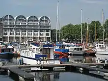 Although most of the Surrey Docks were infilled and converted to residential, commercial or light industrial land, South Dock escaped this fate. The former warehouses were demolished and replaced with residential blocks, while the dock itself was refurbished. Residential development in the area received funding from the London Docklands Development Corporation, erecting unique buildings, such as Baltic Quay. In 1994, South Dock reopened as London's largest marina, with over 200 berths.[3] It is now largely occupied by yachts and residential barges.