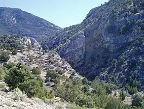 In the southern third of the Wilderness, Long Valley forms an open bowl between high mountain ridges. Rolling hills of pinyon and juniper forests and deep canyons of riparian vegetation round out the ecological and scenic diversity.[1] Angel Cave, a mostly-unexplored, limestone pit cave, lies within the Wilderness at an elevation of approximately 9,000 feet (2,700 m).[3]