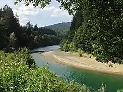 The Kai Pomo, a branch of the Pomo people, once lived in the upper portion of the watershed.[4] Before industrial development in the 1800s, many native tribes relied on the river's abundant runs of salmon and steelhead. In the 1920s, a private company built the Benbow Dam, blocking fish migration to a large area of the basin.[5]