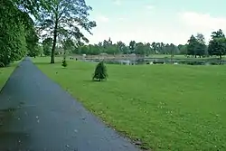 ![]() The South Inch viewed from its western edge, looking north, in 2004. In view is the former boating pond and, in the background, the church of St Leonard's in the Fields, on Marshall Place | |