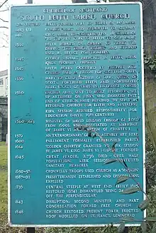 South Leith Parish Church, originally the Kirk of Our Lady, St Mary, is a congregation of the Church of Scotland. It is the principal church and congregation in Leith, in Edinburgh. Its kirkyard is the burial place for John Home[1] (author of Douglas) and John Pew, the man from whom the author Robert Louis Stevenson reputedly derived the character of Blind Pew in the novel Treasure Island.[2] The church has been repaired, used as an ammunition store and reconstructed[3] but still retains the basic layout of the nave of the old church.