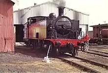 On the site by 1918 were also a sand drying shed, a signing-on cabin and a wooden coaling platform. An elevated coal loader fed via conveyor was built in 1927. Goods sheds from Caledonia and Weston stations were moved to the site in 1930 to serve as an oil store and a lunch room. A brick bath house was built in 1943. In 1957 a toilet block, a machine shop and stores building, and a new signing-on cabin were built. The old battery store was demolished. In 1981 a new sand house and battery shed were built.[5][1]