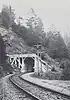 Three of these tunnels were sealed shortly after the line was abandoned: #2/Summit, #3/Glenwood (Laurel), and #4/Mountain Charlie (Clems). Under contract to Southern Pacific, the F.A. Christie railroad salvage firm removed the track and trestles and, when this was completed in April 1942, dynamited these three tunnels. Although a long-persistent rumor holds that destruction of the tunnels was motivated by post-Pearl Harbor fears of a Japanese invasion of the United States West Coast, the decision to dynamite them predated the Pearl Harbor attack and was made solely for business reasons.[19] Tunnel #5/Zayante was also part of the abandoned line, but it was used as a private road after the tracks were abandoned and then as a storage site.[15]