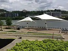 The South Shore Riverfront Park is a 3.4-acre park that stretches from 25th to 29th streets along the south banks of the Monongahela River upriver from Downtown Pittsburgh, Pennsylvania, United States. It is situated on the site of the former Jones & Laughlin Steel Mill and is adjacent to the SouthSide Works retail and residential complex.