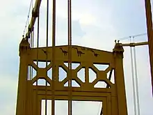 The bridge superstructure is painted in the signature "Aztec Gold" color used on several other downtown bridges in Pittsburgh.[8]