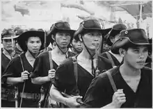 The concept of Regional Forces was to counter the Viet Cong (VC) Local Force units, while the ARVN regular forces fought the better equipped VC Main Force units and the People's Army of Vietnam (PAVN). Local militia came to play a very effective role in the war, as the style of small-unit warfare was better suited for guerrilla conflicts with most more familiar with the region and terrain.[2] Despite being poorly paid, these forces were much more capable at detecting infiltration and holding civilian areas.[4] Accounting for an estimated 2-5% of war budget, the Regional Force and the Popular Forces were thought to have accounted for roughly 30% of casualties inflicted upon VC/PAVN throughout the entire war.[5] Part of this derives in these units generally being more capable of engaging in small-unit, highly-mobile tactics which proved difficult for slow-moving equipment-heavy units.[4]