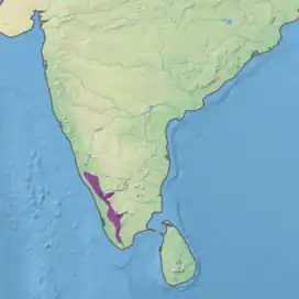 The South Western Ghats montane rain forests is an ecoregion in South India, covering the southern portion of the Western Ghats in Karnataka, Kerala and Tamil Nadu at elevations from 1,000 to 2,695 m (3,281 to 8,842 ft). Annual rainfall in this ecoregion exceeds 2,800 mm (110 in).[3]