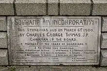 The hospital was founded in 1900 as the Southampton Union Infirmary in Shirley Warren, Southampton, to replace hospital beds previously provided at the workhouse infirmary in St Mary's, Southampton. The Royal South Hampshire Hospital was the voluntary hospital, founded in 1835 in the city.[1] The initial 35-acre (14 ha) site cost the Poor Law Guardians £8,200, and the foundation stone was laid on 31 March 1900.[1] The original building, housing 289 beds, cost £64,800 to construct; it has since been demolished.[1]