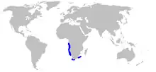 The southern African frilled shark is found from off the coast of southern Angola to Namibia and South Africa.[3] Frilled sharks have also been captured off South Africa, at 1,230–1,400 m (4,040–4,590 ft) deep off Eastern Cape Province, and at 300 m (980 ft) deep off KwaZulu-Natal Province; it is uncertain whether these specimens are C. africana. Little is known of its habitat preferences; one known specimen was caught 425 m (1,394 ft) down in a zone of low dissolved oxygen and high nutrients, over a soft substrate.[2]