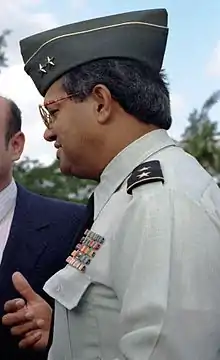During the 1980s, the Bar Association of Puerto Rico determined that pre-existing compacts of association could be modified to fit the local needs.[21] Within the PPD, senator Marco Antonio Rigau officially presented a free association proposal to the PPD's Government Board (Spanish: Junta de Gobierno), but (now governor) Hernández Colón dismissed the idea as one that contradicted the postures of his administration and stated that free association was only supported by a few "liberal quills" within the PPD and presented his own initiative excluding sovereignty as an element.[22] Despite representing one of the earliest confrontations between the factions of the party and that the conservatives held most positions of influence, the ongoing faction skirmishes concluded with a new definition of "Commonwealth" being adopted by the General Council due to the initiative of liberal Carlos Vizcarrondo, stating that any future development would be "non colonial and non territorial".[23]