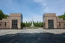 The monument is one of three Soviet memorials built in Berlin after the end of the war. The other two memorials are the Tiergarten memorial, built in 1945 in the Tiergarten district of what later became West Berlin, and the Soviet War Memorial (Treptower Park).