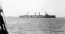 The ship was rearmed during World War I with fourteen 55-caliber 130 mm (5.1 in) B7 Pattern 1913 guns in single mounts, four of which were positioned in casemates. Her anti-aircraft armament consisted of two 75-millimeter (3 in) guns. She also mounted six submerged 457-millimeter (18 in) torpedo tubes, three on each broadside.[2]