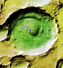 Spallanzani is a crater on Mars, located in the Hellas quadrangle at 58.0° south latitude and 86.4° east longitude. It measures 71.69 kilometres (44.55 mi) in diameter, and was named after Italian biologist Lazzaro Spallanzani (1729–1799). The name was adopted by IAU's Working Group for Planetary System Nomenclature in 1973.[1]