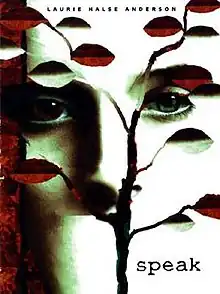 Speak, published in 1999, is a young adult novel by Laurie Halse Anderson that tells the story of high school freshman Melinda Sordino.[1][2] After Melinda is raped at an end of summer party, she calls the police, who break up the party. Melinda is then ostracized by her peers because she will not say why she called the police.[1][2] Unable to verbalize what happened, Melinda nearly stops speaking altogether,[1] expressing her voice through the art she produces for Mr. Freeman's class.[1][3] This expression slowly helps Melinda acknowledge what happened, face her problems, and recreate her identity.[2][4]