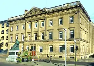 In 1897 he commissioned the Edinburgh architects George Washington Browne and John More Dick Peddie to wholly remodel the company offices on George Street. This incorporated the pediment of David Bryce's original office of 1839, and the residential flat on the top floor (where he was born).[10]