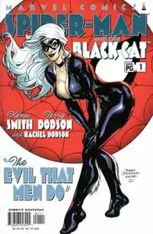 Following his acclaimed and successful runs on Daredevil and The Green Arrow, Marvel Comics were eager to work with Kevin Smith, and he was planned to take over as writer on The Amazing Spider-Man. Terry Dodson, his profile growing after well-received stints on Generation X and Harley Quinn, would be the title's artist. While J. Michael Straczynski finished his work on Amazing Spider-Man, the new team were commissioned to work on a six-issue mini-series for the summer of 2002, planned to reintroduce Black Cat to readers after scant recent appearances.[1] The first two issues shipped as planned in August, and September 2002. Smith intended to do his Marvel work alongside the Bennifer film Jersey Girl[2] However, there was a two-month delay before the third came out, and then as Smith moved onto preparing for Clerks II fell off the schedule entirely, and Straczynski instead remained as Amazing Spider-Man writer.
