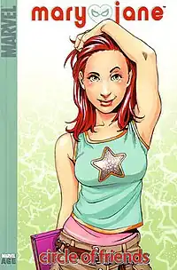 The initial four-issue miniseries, Mary Jane, originally intended as an ongoing series, began publication in June 2004 under the Marvel Age imprint, a line of comic books by Marvel Comics aimed at younger readers. Marvel had decided to launch a comic book series with a female lead to attract young female readers after seeing a growing number of girls becoming comic readers through manga, and had chosen Mary Jane because of her popularity stemming from the Spider-Man film series (Spider-Man 2 was released two weeks after Mary Jane #1).[2] Mary Jane was also the subject of a popular young adult novel by Judith o'Brien the year before.[3] However, due to low sales the series was discontinued after its fourth issue, with Marvel waiting to see how the digest-sized trade paperback collecting the four issues would sell, before deciding whether the series should be canceled for good or not. Simultaneously, a collected edition of the series was also released in magazine size with a cardstock cover, exclusively available at Target Stores.
