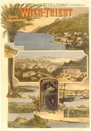 ![]() Poster of the Southern Railway Company from 1898 with views of the Austrian Riviera. | ||||||||||||||||||||||||||||||||||||||||||||||||||||||||||||||||||||||||||||||||||||||||||||||||||||||||||||||||||||||||||||||||||||||||||||||||||||||||||||||||||||||||||||||||||||||||||||||||||||||||||||||||||||||||||||||||||||||||||||||||||||||||||||||||||||||||||||||||||||||||||||||||||||||||||||||||||||||||||||||||||||||||||||||||||||||||||||||||||||||||||||||||||||||||||||||||||||||||||||||||||||||||||||||||||||||||||||||||||||||||||||||||||||||||||||||||||||||||||||||||||||||||||||||||||||||||||||||||||||||||||||||||||||||||||||||||||||||||||||||||||||||||||||||||||||||||||||||||||||||||||||||||||||||||||||||||||||||||||||||||||||||||||||||||||||||||||||||||||||||||||||||||||||||||||||||||||||||||||||||||||||||||||||||||||||||||||||||||||||||||||||||||