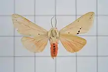 Spilarctia subcarnea is a moth in the family Erebidae. It was described by Francis Walker in 1855. It is found in Nepal, China (Hong Kong, Zhejiang, Shanghai, Hubei, Sichuan, Beijing, Shandong Heilongjiang, Shaanxi, Jiangsu, Hunan, Fujian, Yunnan, Jilin, Guangdong, Dunbei, Nei Mongol, Guizhou, Gansu, Henan, Liaonin, Hebei, Shanxi, Anhui, Jiangxi, Guangxi), the Russian Far East, Korea, Japan and Taiwan.[1]
