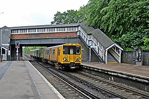 Trains run to Liverpool at a frequency of approximately every 10 minutes and a service to Chester every 15 minutes on weekdays and Saturdays until late evening when the service to each destination becomes half-hourly, as it is on Sundays. Additionally there is a half-hourly service to Ellesmere Port all day, every day.[5] Northbound trains operate via Hamilton Square station in Birkenhead and the Mersey Railway Tunnel to Liverpool. Southbound trains all proceed as far as Hooton, where the lines to Chester and Ellesmere Port divide. These services are all provided by Merseyrail's fleet of Class 507 and Class 508 EMUs.