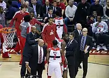 An aspect of communication in sports is non-verbal communication. Non-verbal communication is when two or more people express communication using anything besides words. This can be facial movements, reading posture, eye contact, or the tone of one's voice.[21] Participants in sports use and examine non-verbal communication when verbal communication cannot be used. Players and teams use non-verbal communication to connect coordination and help share information or upcoming tactics.[22] Effective non-verbal communication uses only needed movement and not excessive movement which can decrease effectiveness of the non-verbal communication and coordination of the team.[23]