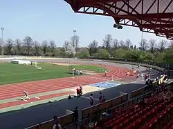 Palmer Park Stadium within Palmer Park has a velodrome and athletics track. It is used by Palmer Park Velo, Reading Athletic Club[5] and the Berkshire Renegades for training.[6]