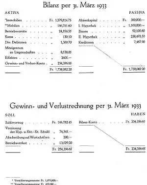 - ↑ Publikation der Löschung nach vollendeter Liquidation im Schweizerischen Handelsamtsblatt 8 May 1964, Nr. 129, p. 1776.