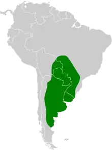 P. m. maculosa is found in southeastern Bolivia south and east through Paraguay, southern Brazil, and Uruguay to south-central Argentina. It inhabits arid to semi-arid open woodland and scrub up to 1,000 m (3,300 ft) in elevation. It shuns towns. P. m. albipennis is found from central Peru south to western and central Bolivia, extreme northwestern Argentina, and far northern Chile. It also inhabits arid to semi-arid open woodland and scrub, but at elevations generally between 2,000 and 4,300 m (6,600 and 14,100 ft). It is locally common in towns.[8]
