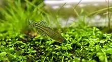 Though its diet has been little-studied, algae and small invertebrates make up a large part of it.[2]