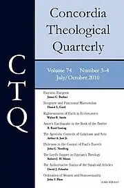 Concordia Theological Quarterly is a peer-reviewed academic journal of theology published for the Lutheran Church–Missouri Synod by the faculty of Concordia Theological Seminary in Fort Wayne, Indiana. It continues The Springfielder and is published in January, April, July, and October each year. The journal is abstracted and indexed by the ATLA Religion Database, Religion Index One: Periodicals, International Bibliography of Periodical Literature on the Humanities and Social Sciences, Old Testament Abstracts, and New Testament Abstracts.
