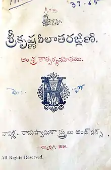 Sri Krishna Leela Tarangini book cover in Telugu script.