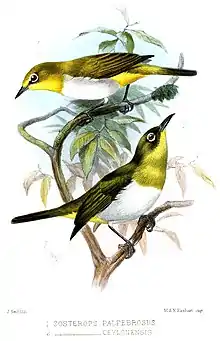 The Sri Lanka white-eye (Zosterops ceylonensis) is a small passerine bird in the white-eye family, which is endemic to Sri Lanka. It is a resident breeder in forests, gardens and plantations, mainly in the highlands.