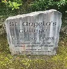 St. Angela’s College was founded by the Ursuline Order in 1952 and was a recognised college of the National University of Ireland from 1978-2006. In 2006 the college became a recognised constituent college of the National University of Ireland Galway.[1] It became a college of the Atlantic Technological University in 2022.[2]