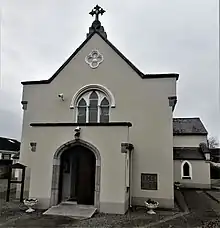 St. Brigid's Church bears a foundation stone with the date "1786" and the church was consecrated on 28 August 1788.[3][4][5] The gates outside were added c.1860.[6] St. Brigid's was renovated in 1913–15, with a Gothic Revival altar in white and red marble added, as well as the stained-glass windows in the west (probably by Joshua Clarke and Sons).[2]