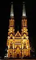 There has been a Catholic church presence in or around the site of the future church since 1583. However, the impetus for creating a lasting church did not arrive until the late 19th century, when Poland was not an independent country.[1] The map of Europe was redrawn during the 1815 Congress of Vienna and the resulting territorial maneuvers placed the French Duchy of Warsaw under the control of the Russian Empire, transforming it into the Congress Poland.[2] Among other intrusions, over twenty Russian Orthodox churches were built in Congress Poland.[3] To protest against the perceived imposition of a foreign church, and in direct reaction to the monumental Orthodox Church of Mary Magdalene built down the street, St Florian’s was built with two commanding 75-meter (246 ft) towers between 1897–1904.[1][4]