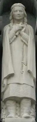 A Jesuit Father and brother reached the reservation soon after 1881 and, with financial help from St. Katherine Drexel, constructed a large building by 1886.[3] In 1888, Franciscan Sisters Kostka, Rosalia, and Alcantara came to teach in the school, which they named after St. Francis. Jesuit Fr. Florentine Digmann, who had come with the sisters, worked with the Lakota and established a total of 37 mission stations, or chapels, on the Rosebud Reservation.