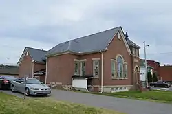 It is a gable-front brick building, with brick laid in common bond. It is the second church of the congregation: the first church was a wood-frame building which was moved in 1905 to the property, and which was eventually destroyed sometime after the brick building was built alongside.[2]