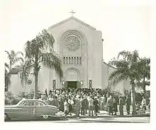 The parish established a school in 1928.[3] The two-story Mediterranean Revival school building, which was completed the same year, is a contributing property in the Lake Eola Heights Historic District.[4] It features a bell tower, an ornate entrance, and embellished friezes.