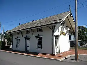St. James station was built in 1873, along the Smithtown and Port Jefferson Railroad in the northern part of the Town of Smithtown. The station house, designed by Calvin L'Hommedieu, remains the second-oldest existing station-house of the Long Island Rail Road, surpassed only by Hewlett station, which was originally built in 1869 by the South Side Railroad of Long Island. When the Flowerfield station to the east was abandoned in 1958, the commuters who previously used that depot at the Gyrodyne Company of America were redirected to the St. James and Stony Brook, New York depots. Until 1964, the station also contained an express house and an outhouse, both of which were demolished along with some trees to make room for an expanded parking lot, much to the chagrin of the community. The station is located within the Saint James District, which was added to the National Register of Historic Places in 1973.[4]