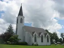 St. John of the Cross Episcopal Church, Rectory and Cemetery is a historic Episcopal church complex located at Bristol, Elkhart County, Indiana. The church was built between 1843 and 1847, and is a one-story, Gothic Revival style frame building. It has a projecting bell tower with octagonal roof and lancet windows. The associated rectory was built in 1830, and is a 1+1⁄2-story, rectangular, Greek Revival style frame dwelling. The complex also includes the contributing church cemetery.[2]: 2–3