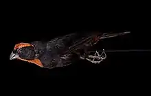 The St. Kitts bullfinch (Melopyrrha grandis), known locally as the mountain blacksmith, is a possibly extinct songbird species of the genus Melopyrrha which was endemic to the island of Saint Kitts.