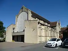 The church - designed by J. S. Alder - replaced the dilapidated St John's which was on the site now occupied by the Potters Bar war memorial. The foundation stone was laid by Princess Marie Louise of Schleswig-Holstein in June 1914 and the church opened one year later.[1]
