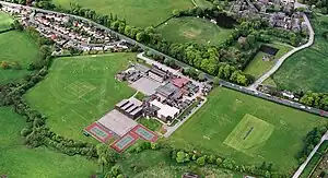 The school site comprises 17 acres (69,000 m2) in a semi rural location on the periphery of the village of Menston. The site is bordered by moorland,[34] streams and pasture. The former High Royds Hospital (now a housing development) is opposite the school.