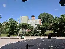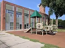 St. Monica's Church is a historic former Roman Catholic parish church in the Diocese of Brooklyn, located in Jamaica, Queens, New York. It was built in 1856 and is a brick basilica-type building in the Romanesque style. It features a four-story entrance tower in the center of its three-bay-wide front facade.[2] Saint Monica's Church has been refurbished on the Campus of York College as a child care center.